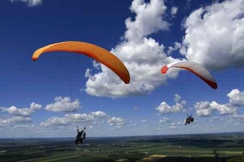 Tandem Paragliders on a Sunny Day - 72"W x 48"H - Peel and Stick Wall Decal by Wallmonkeys Feature