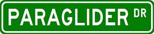 PARAGLIDER Street Sign ~ Custom Aluminum Street Signs. Made of Aluminum and High Quality Vinyl Letters and Graphics. This sign is 9 x 36 inches. Made to last for years outdoors, the sign is nice enough to display indoors too, comes with two holes pre-punched for easy installation and the corners are rounded. The item shipped will be exactly as shown in the picture (Unless you notify us otherwise i.e. a custom made order)